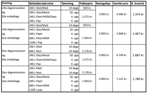Nedenfor fremgår affaldsgebyr (2025-priser) for de 4 pakkeløsninger.