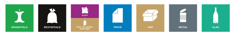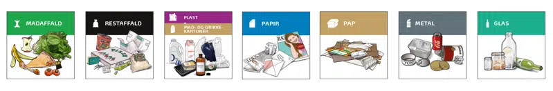 Mærkater på 6x6 cm., som kan sættes på skraldespande indenfor, eller brug som dem en som pegebog til læring af, hvordan der skal sorteres. Tryk på linket herunder for download.